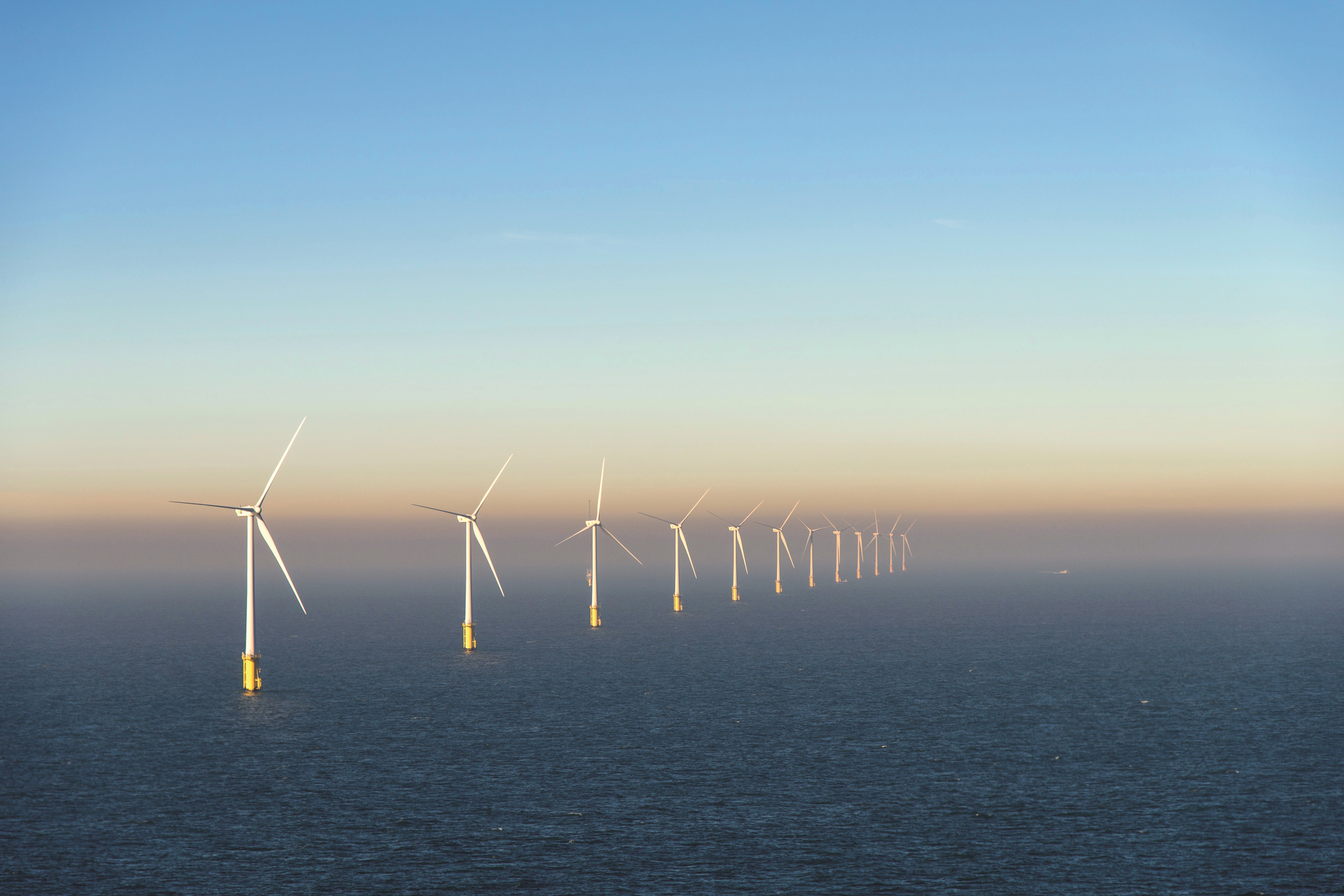 The Princess Amalia offshore wind farm. The wind farm consists of sixty wind turbines and is located in block Q7 of the Dutch continental shelf, 23 kilometers (14 miles) from shore. Credit: Siebe Swart, 2013.